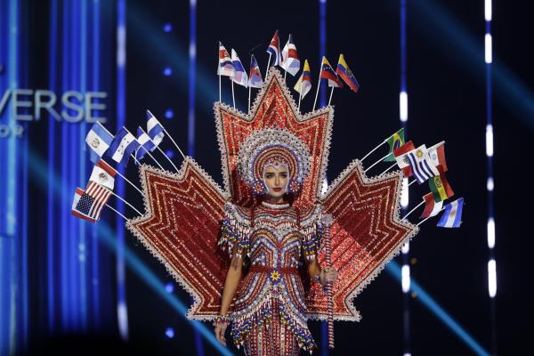 2023环球小姐候选人在决赛前的晚会上穿着五颜六色的服装