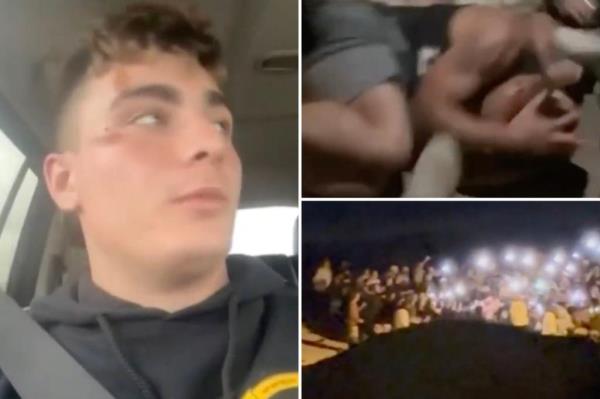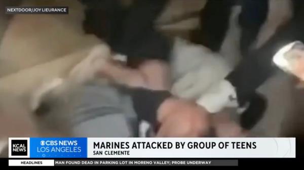 视频显示,下班的海军陆战队员被多达40名青少年的暴徒殴打