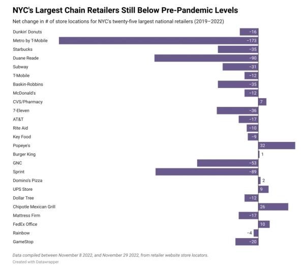 自2019年以来,纽约市已经失去了781家连锁店