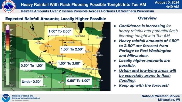 麦迪逊地区周一晚上到周二早上进行洪水监测看看会下多少雨