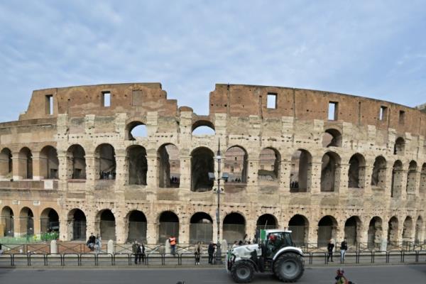 意大利农民在罗马斗兽场举行象征性抗议