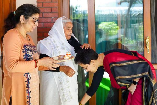 在提交德里预算之前,阿提希寻求曼尼什·西索迪亚的母亲、妻子的祝福