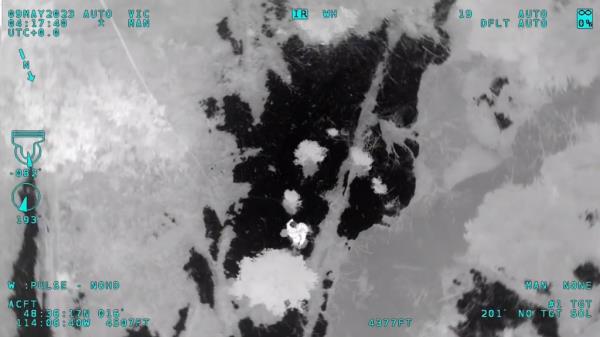 周一晚上11点左右,蒙大拿州搜救小组Two Bear Air在落基山脉1,583平方英里的荒野中,一处树木繁茂的地方发现了一个热信号。