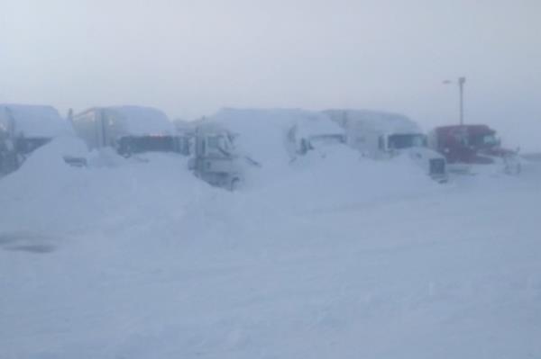 维维安,SD -上周,几英尺厚的积雪和高达60英里/小时的大风将卡车司机困在南达科他州的一个燃料站好几天,直到他们的钻机从雪堆中被挖出来。